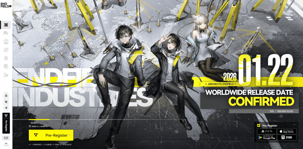 Bersamaan dengan pengumuman tanggal rilis, pihak pengembang juga membuka pra-registrasi global melalui situs resmi Endfield untuk semua platform. Program pra-registrasi ini datang dengan sistem milestone rewards, di mana pemain yang ikut serta sejak awal bisa mendapatkan begitu banyak hadiah menarik ketika target komunitas terpenuhi.