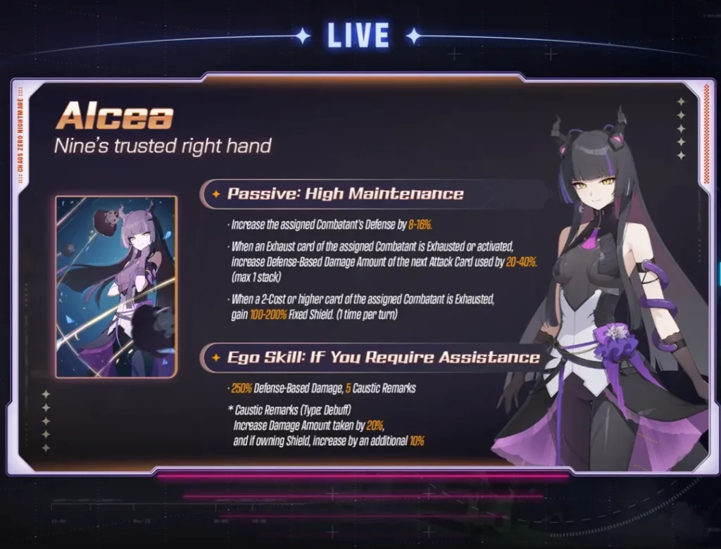 Nine diposisikan sebagai karakter tank-support hybrid yang kuat di konten Chaos, terutama setelah penyesuaian balance di Season 2.