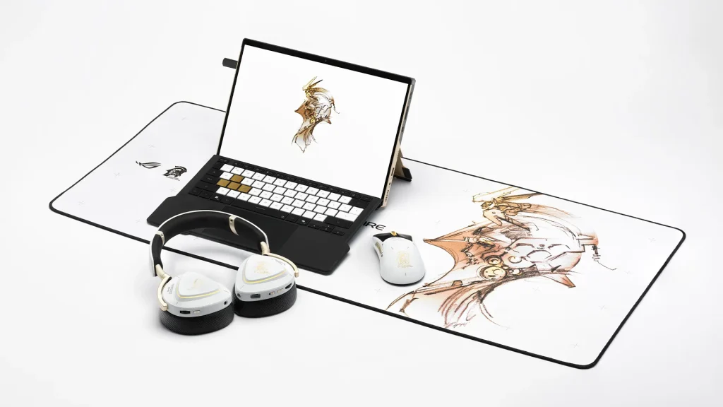 Kolaborasi ini tidak hanya menghadirkan Flow Z13 KJP, tetapi juga lini peripheral eksklusif yang dirancang bersama tim Kojima Productions. Seluruh produk peripheral ini mengusung desain putih mencolok dengan sentuhan emas dan abu abu, serta ilustrasi khas Ludens.