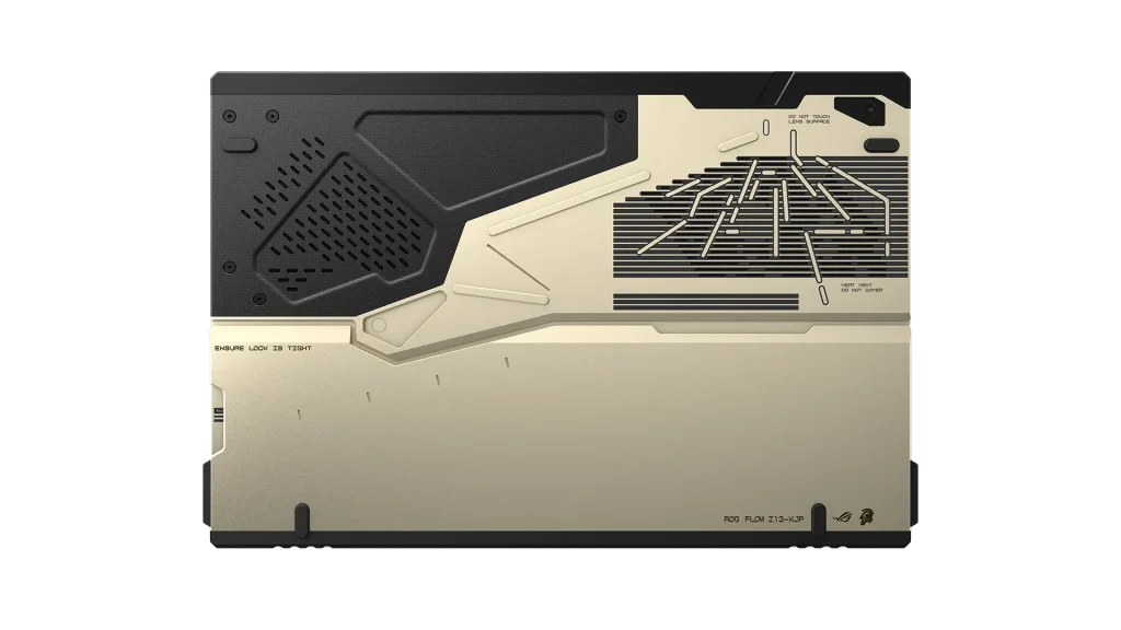 Tablet ini menggunakan chassis aluminium CNC dengan aksen carbon fiber, potongan desain angular, serta tipografi berani yang terinspirasi dari Ludens. Flow Z13 KJP juga hadir dengan berbagai elemen eksklusif seperti tas khusus, kemasan kustom, adaptor daya bertema khusus, hingga tema Armoury Crate yang hanya tersedia di edisi ini.